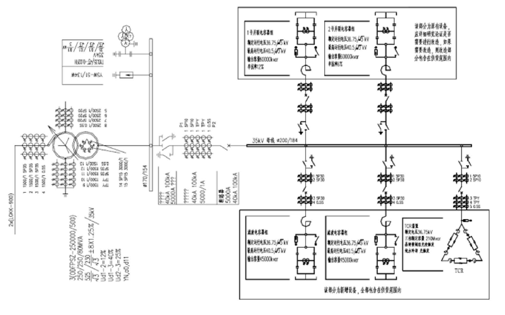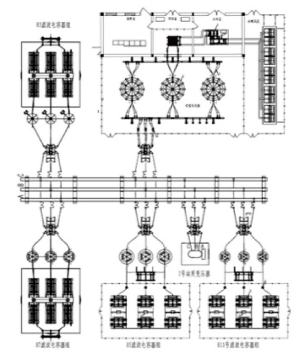 أجهزة المعوضات الثابتة SVC بقدرة 210 ميجا فار صممت وصنعت من قبل شركة RXPE لمحطة التحويل CSG Wuzhou 500 كليو فولت في سنة 2008. المعوضات الإستاتيكية SVC تشمل واحد من فروع دائرة التحكم بالثايروستر بالمحاثة (TCR) وتفرعين من مرشحات التوافقيات علاوة على تفرعين من MSC، سعة الخرج من – 120 ميجا فار (حثي) إلى +210 ميجا فار (سعوي). قضيب التوصيل للجهد المتوسط صمم بحهد 35 كيلو فولت وموصل بقضيا التوصيل 500 كيلو فولت من خلال محول خافض للجهد.