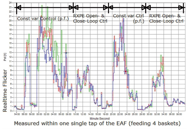 بعط التوصل إلى النتائج السابقة، قامت شركة RXPE بتقديم دارسة للنظام بعناية وأقترحة المعوضات الساكنة SVC في محطة التحويل 230 كيلو فولت. أجهزة المعوضات الثابتة SVC كانت مقننة بقيمة 10 ميجا فار (حثي) إلى 100 ميجا فار (سعوي) مع نطاق للقدرة غير الفعالة الديناميكية الكلية 100 مبجا فولت أمبير موصلة مع محطة التحويل الموجودة عند قضيب التوصيل 13.8 كيلو فولت (نفسها مع فرن القوس الكهربائي (EAF)).